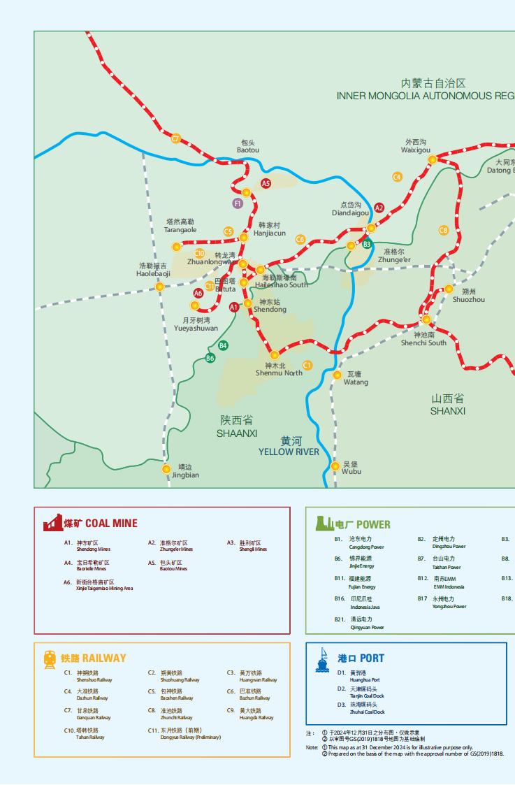 以下為中國神華2024年運營數據概覽和主要資產分布圖:
