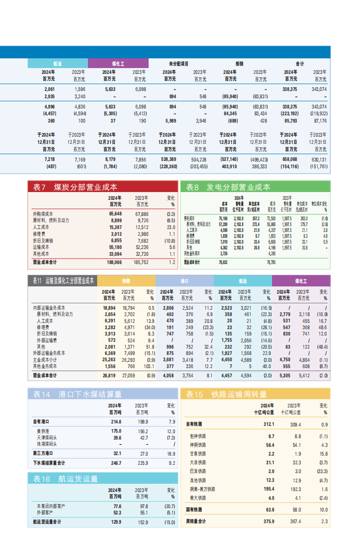 2024年,中國神華煤炭、發電、運輸及煤化工分部利潤總額(合并抵銷前)占比為67%、14%、19%和0%(2023年:71%、13%、16%和 0%)。那么,按利潤總額簡單換算來看,神華賣煤一天大概能掙1.57個“小目標”,發電一天大概能掙0.328個“小目標”。